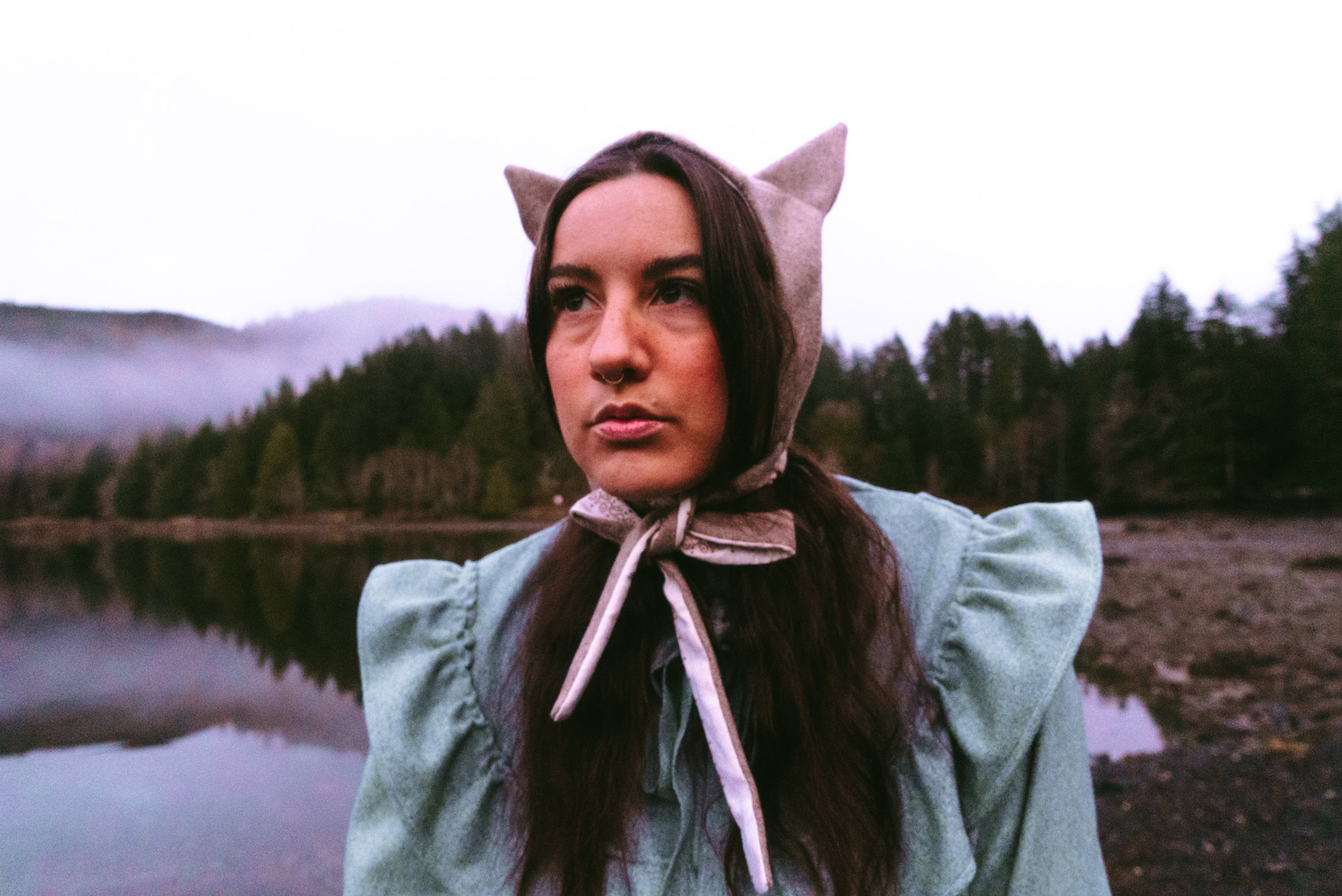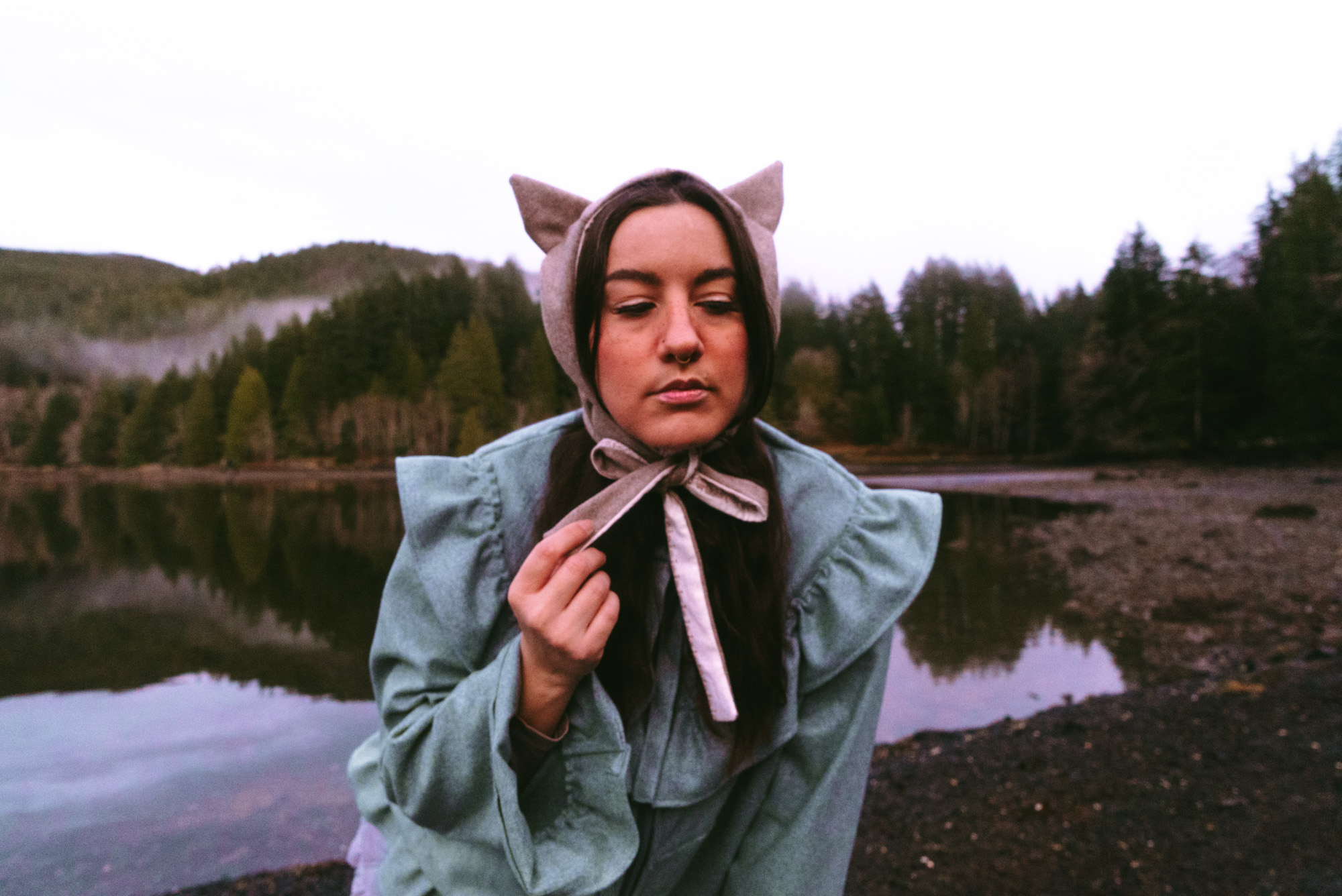 Made of recycled wool scrap with a 100% cotton lining, the Max bonnet was originally envisioned as a knit or croched piece. I thought I was going to have to learn how to knit until I stumbled upon images of devil hoods of the 1930s and 1940s and thought they would make a fantastic template for the cat hat I had been dreaming of.